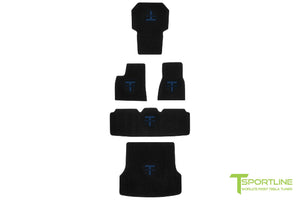 Our Tesla Model S Floor Mat set is custom made and hand crafted from the finest 52oz. 3/4" pile carpet and is available in a 3 piece set for the front and rear seat floors, or a 5 piece set for the frunk, front seat floor, rear seat floor and trunk. Our horizontal logo can be engraved in a variety of colors and other logos are available upon request.