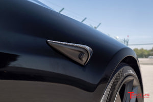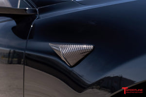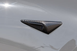 Improve the appearance of your Tesla front lower side cameras with T Sportline Carbon Fiber Camera Covers. These T Sportline premium covers are manufactured in a precision CNC'd alloy mold using genuine pre-preg bi-directional weave carbon fiber, which is cured in an autoclave. The pre-impregnated carbon weave fabric includes the proper curing epoxy resin allowing for the laminate to be directly laid in the pressure and heat forming mold. This is the only process which creates precision fitting components - don't be fooled by other lesser mirror covers (or worse yet, cheap-looking faux carbon wrapped covers) imported at low costs, expect inferior fitment on those for sure. The T Sportline cover fitment, uniformity and cosmetics are superior. The T Sportline covers include a full surface adhesive attachment tape, ensuring an enduring installation. Other inferior covers use an inadequate strip of tape which may result in the cover loosening or falling off. The T Sportline Carbon Fiber Camera Covers not only enhance the look of the car, but provide a layer of protection against road debris, dings, and scratches. No tools are necessary for installation and no permanent modification is necessary.