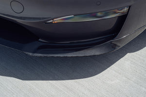 The front apron is manufactured in a precision CNC'd alloy mold using pre-preg carbon fiber, which is cured in an autoclave. The T Sportline Front Apron attaches to the factory front bumper. The Front Apron not only enhances the look of the car, but also provides a layer of protection against road debris, dings, and scratches. No tools are necessary for installation. Each Front Apron comes pre-installed with double sided tape.