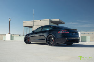 Yes, 21x9.5" and 21x10.5" TS Series forged wheels fit your factory Tesla center caps. They also fit your factory TPMS, tires, and lug nuts. In other words, there is no need to use any aftermarket hardware.