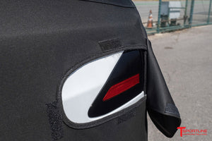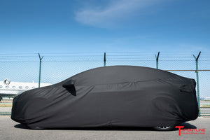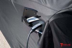 BlackMaxx covers fit your Tesla like a soft glove, carefully hugging its contours and protecting the entire vehicle from top to bottom and front to rear from weather, sunlight, rain, dings, scratches, dust, dirt and tree droppings. Protect your Tesla from the harshest of environments with the ONLY dual-rated Indoor / Outdoor Car Cover designed to precision fit and work properly on a charging Tesla. The silky smooth 3-layered breathable material features a thermoplastic polyurethane and two outer layers of woven polyester, allowing for breathability while providing the very best water resistance possible in a car cover. The integrated charge port cover opening allows for charger connection and covers back up with a Velcro back flap when not charging. The BlackMaxx cover features ventilated mesh around the front air intake and front wheels ensuring proper airflow during charging - this is critical for safe charging.