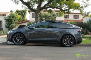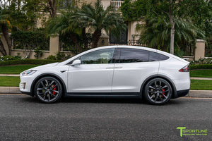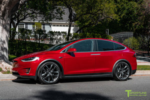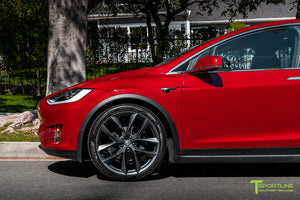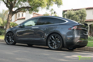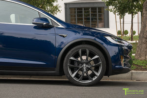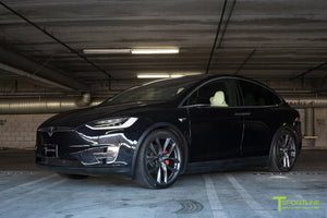 Yes, 22x9.0" and 22x10" TSS wheels fit your factory Tesla center caps. They also fit your factory TPMS, tires, and lug nuts. In other words, there's no need to use any aftermarket hardware.