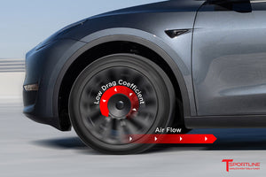 T Sportline engineers have developed the most stylish aerodynamic wheel cover for Tesla Model Y wheels. Not only do the T Sportline TSY14 Wheel Covers improve the look of your factory 19 inch wheels, the covers also retain the range saving aerodynamic benefit factory aero covers offer. T Sportline TSY14 Aero Wheel Covers are inspired by the Uberturbine design, and come finished in the Tesla Satin Black color.