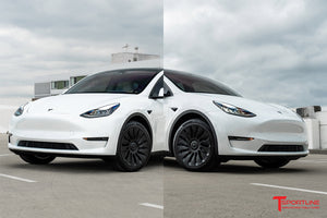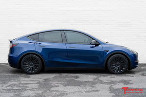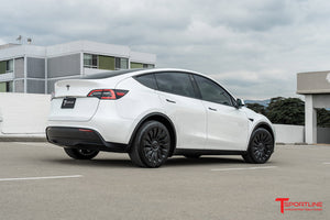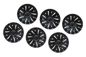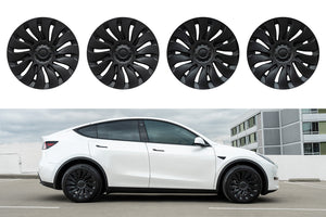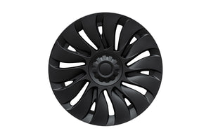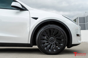 T Sportline engineers have developed the most stylish aerodynamic wheel cover for Tesla Model Y wheels. Not only do the T Sportline TSY14d Max Range Directional Wheel Covers improve the look of your factory 19 inch wheels, the covers also retain the range saving aerodynamic benefit factory aero covers offer. This set of covers two has "left side" covers and two "right side" covers. The cover design is optimized for maximum aerodynamic efficiency by orienting the spoke fines correctly for airflow on the left side of the vehicle and oppositely on the right side of the vehicle. T Sportline TSY14d Max Range Directional Aero Wheel Covers are inspired by the Tesla 21" Uberturbine design, and come finished in the Tesla Satin Black color.