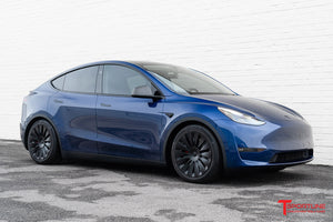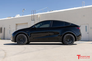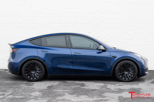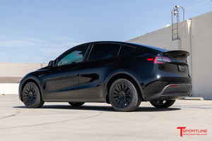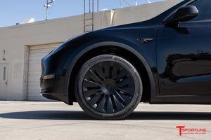 T Sportline engineers have developed the most stylish aerodynamic wheel cover for Tesla Model Y wheels. Not only do the T Sportline TSY14i Wheel Covers improve the look of your factory 19 inch wheels, the covers also retain the range saving aerodynamic benefit factory aero covers offer. T Sportline TSY14i Aero Wheel Covers are inspired by the Tesla 20" Induction design, and come finished in the Tesla Satin Black color.