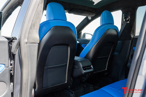 Our T Sportline Tesla Model Y Carbon Fiber Seat Backs are a finely crafted shell that affixes over your current factory seat backs. Each seat back is is manufactured in a precision CNC'd alloy mold using genuine pre-preg bi-directional weave carbon fiber, which is cured in an autoclave. The pre-impregnated carbon weave fabric includes the proper curing epoxy resin allowing for the laminate to be directly laid in the pressure and heat forming mold. This is the only process which creates precision fitting components - don't be fooled by other lesser quality seat backs imported at low costs, expect inferior fitment on those for sure. The T Sportline seat back shell fitment, uniformity and cosmetics are superior.