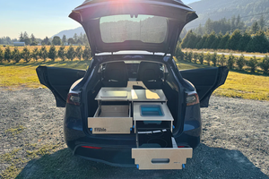 T Sportline is pleased to offer the ultimate solution for camping, cooking, and adventuring in your Tesla Model Y.  A modular camping system engineered specifically for the Model Y.  From "Lite" to "Original" to "Expedition", we have a version to serve all levels!