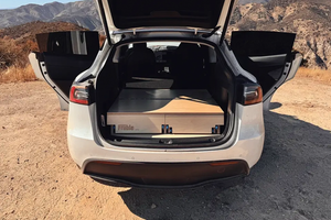 The Original Camper Kit for the 5-seat Tesla Model Y expanded what was possible for Tesla camping, featuring three 22-inch slide-out drawers that create a functional camp kitchen, a flat and comfortable sleeping platform, and ample storage for your gear. With the Version 2 update, the sub-trunk covers are now integrated into the bed platform, simplifying setup and improving overall functionality.