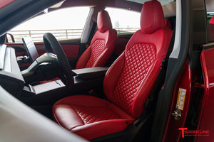 Give your Tesla Model Y an instant upholstery upgrade with our exclusive interior seat reskinning kit. These are not just inexpensive 'seat covers', these are full custom cut and sewn re-skinning kits to completely re-upholster your factory Model Y seats! Rest assured, our exacting seat kits are airbag compatible as well. Treat yourself to extra comfort, appealing finishes and personalized color change with our exciting textile offerings. We offer genuine leather or vegan leather (synthetic) options, with a variety of pattern and color options. Mix and match to create your personalized look.