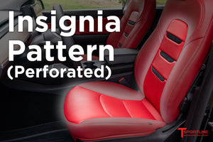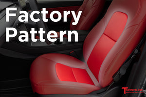 Factory Design maintains the original Model Y seat design. Optional Insignia and Diamond are upgrades stitch patterns.