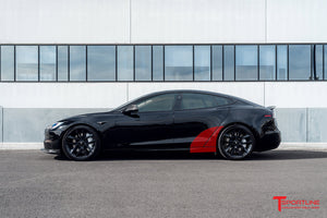 Our new DIY Paint Protection Film Kit (PPF) for Tesla Model S 2021-Present 'Rear Quarter Panels / Doors / Rockers' is the perfect solution to guard against wear & tear on your Tesla paint! The CNC-cut paint protection film has been patterned specifically for the 2021-Present Tesla Model S. Unlike the factory PPF, our custom made template extends well beyond stock to properly protect the the stone chip prone area entirely.