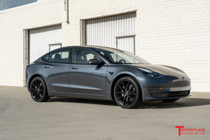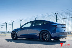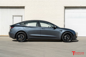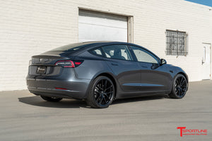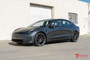 Yes, 20x8.5" TSF wheels fit your factory Tesla center caps. They also fit your factory TPMS, factory 235/35-20" tires and your factory lug nuts. In other words, there's no need to use any aftermarket hardware.