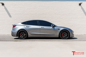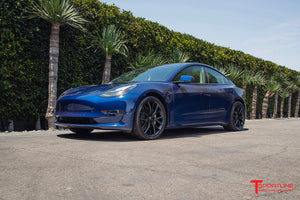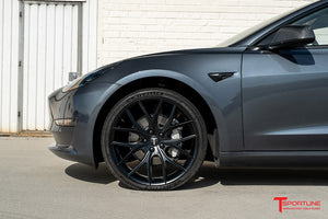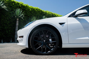 Yes, 20x8.5" TSR wheels fit your factory Tesla center caps. They also fit your factory TPMS, factory 235/35-20" tires and your factory lug nuts. In other words, there's no need to use any aftermarket hardware.