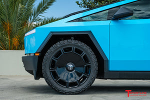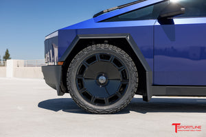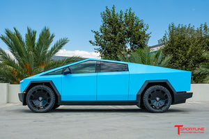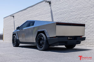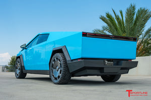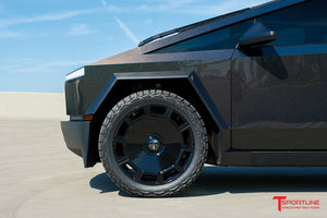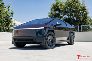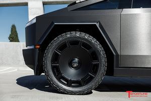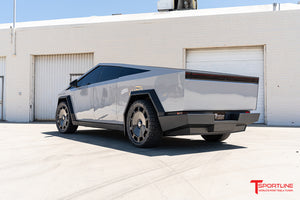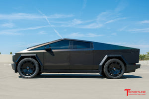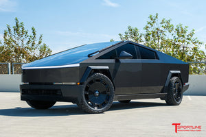 T Sportline's new 24" CT10 fully forged wheel has been engineered specifically to exacting dimensions to create a range preserving aero-efficient monoblock look while still retaining proper structural integrity for spirited Tesla Cybertruck driving. This massive, yet functional Cybertruck wheel is a forged monoblock wheel built for lasting endurance in all driving environments with the full strength confidence needed to survive the worst of road conditions. The CT10 wheel line also features our exclusive fully floating center caps for the distinguished and tastefully hidden lug nut look. As you drive, the center caps 'float' in free rotation and the T logo remains horizontal at all times.