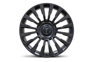 T Sportline's new 24" CT8 fully forged wheel has been engineered specifically to exacting dimensions to create a range preserving aero-efficient monoblock look while still retaining proper structural integrity for spirited Tesla Cybertruck driving. This massive, yet functional Cybertruck wheel is a forged monoblock wheel built for lasting endurance in all driving environments with the full strength confidence needed to survive the worst of road conditions. The CT8 wheel line also features our exclusive fully floating center caps for the distinguished and tastefully hidden lug nut look. As you drive, the center caps 'float' in free rotation and the T Sportline logo remains horizontal at all times.