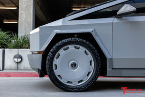 T Sportline's new 24" CTM (Tesla Cybertruck Monoblock) fully forged wheel has been engineered specifically to exacting dimensions to create a range preserving aero-efficient monoblock look while still retaining proper structural integrity for spirited Tesla Cybertruck driving. This massive, yet functional Cybertruck wheel is a forged monoblock wheel built for lasting endurance in all driving environments with the full strength confidence needed to survive the worst of road conditions. The CTM wheel line also features our exclusive fully floating center caps for the distinguished and tastefully hidden lug nut look. As you drive, the center caps 'float' in free rotation and the T logo remains horizontal at all times.