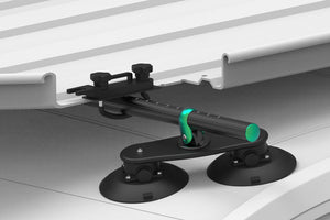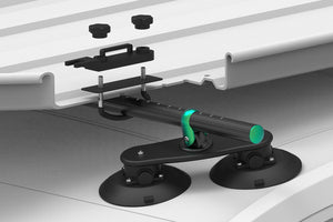 The articulating frame is flexible by design and will conform with body or glass curvature, while providing a confidently rigid mounting structure. The front mount is secured using four (4) TreeFrog vacuum mounts while the rear rack uses two (2) vacuum mounts. Vacuum pumps enable effortless installation. Removal is quick and easy, by just releasing the vacuum and lifting off the rack. This rack fits virtually any car! Designed for use with all types of cargo, up to 88 lbs.