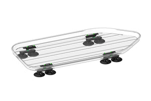 The articulating frame is flexible by design and will conform with body or glass curvature, while providing a confidently rigid mounting structure. The front mount is secured using four (4) TreeFrog vacuum mounts while the rear rack uses two (2) vacuum mounts. Vacuum pumps enable effortless installation. Removal is quick and easy, by just releasing the vacuum and lifting off the rack. This rack fits virtually any car! Designed for use with all types of cargo, up to 88 lbs.