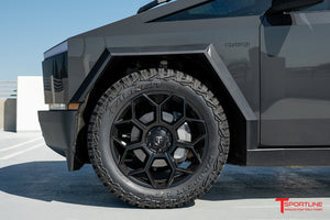 T Sportline's new 22" CT7 (Tesla Cybertruck) fully forged wheel lineup has been engineered specifically to exacting dimensions to create the lightest weight while still retaining proper structural integrity for spirited Tesla Cybertruck driving. This Cybertruck wheel is a forged monoblock wheel built for lasting endurance in all driving environments with the full strength confidence needed to survive the worst of road conditions. Each CT7 features dual knurled bead surfaces to help prevent tire slippage, a benefit that comes standard on all CT7 wheels at no added cost. With an 845hp Cyberbeast launching, you're tires will thank us for the dual knurled bead!