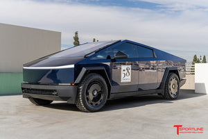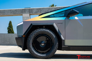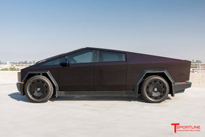 T Sportline's new 22" CTM (Tesla Cybertruck Monoblock) fully forged wheel lineup has been engineered specifically to exacting dimensions to create a range preserving aero-efficient monoblock look while still retaining proper structural integrity for spirited Tesla Cybertruck driving. This Cybertruck wheel is a forged monoblock wheel built for lasting endurance in all driving environments with the full strength confidence needed to survive the worst of road conditions. The CTM wheel line also features our exclusive fully floating center caps for the distinguished and tastefully hidden lug nut look. As you drive, the center caps 'float' in free rotation and the T logo remains horizontal at all times.