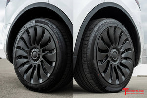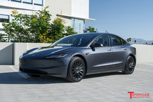 T Sportline engineers have developed the most stylish aerodynamic wheel cover for 2024-Present Tesla Model 3 Highland wheels. Not only do the T Sportline TS314d Wheel Covers improve the look of your factory 18 inch Highland wheels, the covers also retain the range saving aerodynamic benefit factory aero covers offer. T Sportline TS314d Aero Wheel Covers are inspired by the Uberturbine design, and come finished in the Tesla Satin Black color.