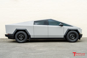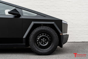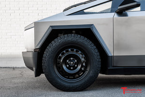 Similar to all T Sportline wheels, the Cyber Steelie works with factory lug nuts, Tesla center caps, Tesla Cybertruck TPMS sensors, factory Tesla Cybertruck tires, and aftermarket tires. Fitment matches stock for hassle free confidence and no risk of 'rubbing' tires on fenders.