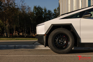 The Tesla Cybertruck has launched and T Sportline is proud to introduce the 'Cyber Steelie' fully forged alloy steel wheel designed and manufactured exclusively for Tesla Cybertruck. This rugged wheel is one of a kind, designed to be plenty strong for the most aggressive Cybertruck usage, while preserving a the DNA of Cybertruck design language. Our TCS 20" alloy steel wheel is uniquely tooled to fit Cybertruck perfectly. The fitment and offset, hub sizing, lug nut bores, and face design have been drawn from scratch to fit Tesla Cybertruck just the same as factory Tesla wheels. This value priced wheel is perfect for any scenario owners seek, from looking to personalize with a cool new look, to adding a second set of rims for winter tires, to beefing up with an alloy steel wheel to endure extreme use. Bring on the 845hp Cyberbeast, the Cyber Steelie is ready for challenge!