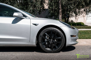 Yes, 19x8.5" TSS wheels fit your factory Tesla center caps. They also fit your factory TPMS, factory 235/40-19" tires and your factory lug nuts. In other words, there's no need to use any aftermarket hardware.