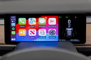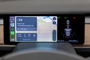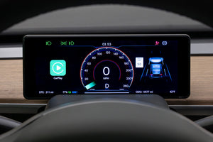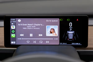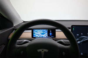 Tired of looking to the right to the essentials like speed, range, trip mileage, temperature, tire pressure or time? Get all this info right in front of you in a small format auxiliary screen for your Tesla Model Y or Model 3. Missing your Apple Car Play or Android Auto? This dash will bring that functionality to your Tesla Model 3 or Y! This new MSX-CP7 is a smaller format screen (measures 6.9") than our original MSX-CP10 screen (measures 9.7"), and this new screen offers improved air conditioning airlfow around the screen versus the MSX-CP10.