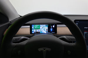 T Sportline's new Tesla Model 3 & Y MSX-CP7 Driver View Dash & Touchscreen LCD Display brings essential vehicle information and added functionality right in front of the driver, viewable through the steering wheel. The high quality touch screen mounts directly to the factory steering column.
