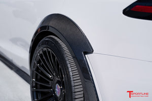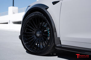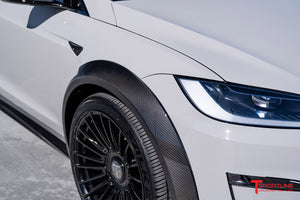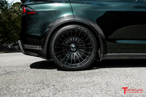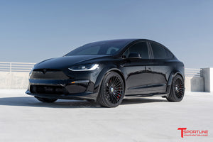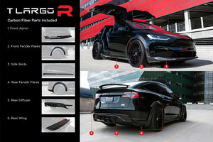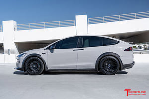 After a few years in planning and design refinement, the TLargo-R Carbon Fiber Wide Body Package for Tesla Model X Refresh has launched! T Sportline was the first to embrace Tesla's original 2016 Model X and design a proper OEM+ limited edition wide-body package. The original package was introduced by T Sportline in the Summer of 2016, and offered as a limited edition upgrade exclusive to twenty owners from 2016-2020. Dubbed the "TLargo" Model X, all twenty limited editions were quickly sold-out and built at T Sportline's Los Angeles based Service Center. When the 2021 refresh was announced, interest was strong for bringing a wide body program to market, and T Sportline's design team started rendering new concepts. Several concept sketches have been reviewed and carefully refined into the final approved wide body package. The TLargo-R is the ultimate in styling and elevation for the Tesla Model X, transforming the MX to an unmatched exclusive level of visual excellence. The Package includes select body enhancements, all manufactured from OEM-grade carbon fiber weave, carefully layed and cured by autoclave, along with T Largo-R signature 22" fully forged twenty-two spoke wheels with floating center caps. Bespoke interior upfits are available and highly recommended to achieve matching elegance inside as well.