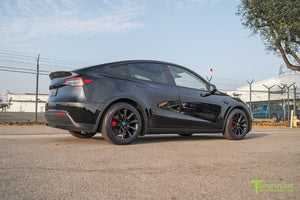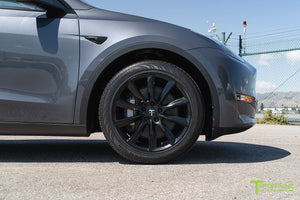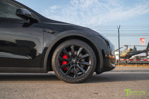 Yes, 19x9.5" TST wheels fit your factory Tesla center caps. They also fit your factory TPMS, factory 255/45-19" tires, and your factory lug nuts. In other words, there's no need to use any aftermarket hardware.