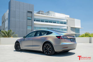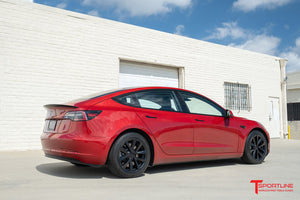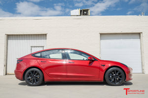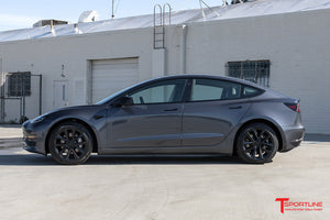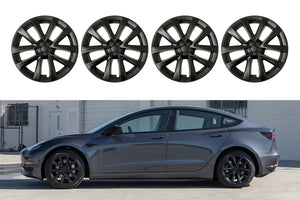 T Sportline engineers have developed the most stylish aerodynamic wheel cover for Tesla Model 3 wheels. Not only do the T Sportline T315 Wheel Covers improve the look of your factory 18 inch wheels, the covers also retain the range saving aerodynamic benefit factory aero covers offer. T Sportline T315 Aero Wheel Covers are inspired by the 21" Model S Arachnid design, and come finished in the Tesla Satin Black color.