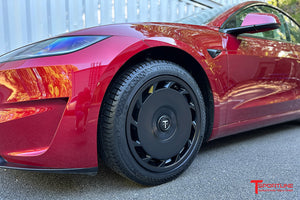 If Tesla Model 3 range efficiency and economy are your goal, this is the Tesla Model 3 wheel upgrade for you. As the leader in Tesla aftermarket upgrade wheels, T Sportline engineers started this wheel design mission with a goal of making a wheel that looks great while improving aero efficiency to extend battery range all while offering the best ride possible. The aero design of the wheel face is fully optimized for each side of the vehicle by making these wheels properly ‘directional’ – you will notice the aero slots around the edge of the wheel are unique for each vehicle side. This ‘directional’ design feature is the premium attention to detail T Sportline would not compromise on! The 18x8.5" TSA Directional wheel's aerodynamic face allows for less drag optimizing vehicle range. The range gains and sporty good looks of the TSA wheel alone are fantastic, but the downsizing to 18” also significantly improves ride quality by increasing tire sidewall height to better dampen those hard-hitting bumps and potholes. And yes, improved protection against pesky ‘curb’ damage comes with the 18” wheel size! Downsizing the wheel yields a reduction in both mass and aero resistance.