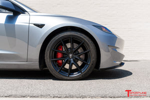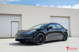 Yes, 19x8.5" TSF wheels fit your factory Tesla center caps. They also fit your factory TPMS, factory 235/40-19" tires, and your factory lug nuts. In other words, there's no need to use any aftermarket hardware.