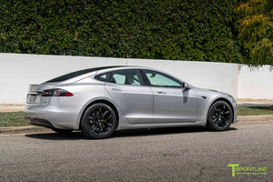 Yes, 19x8.5" TSS wheels fit your factory Tesla center caps. They also fit your factory TPMS, factory 245/45-19" tires, and your factory lug nuts. In other words, there's no need to use any aftermarket hardware.