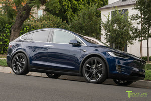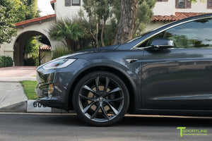Yes, 22x9.0" and 22x10" TSS wheels fit your factory Tesla center caps. They also fit your factory TPMS, tires, and lug nuts. In other words, there's no need to use any aftermarket hardware.