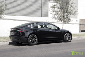 Yes, 18x8.5" TSS wheels fit your factory Tesla center caps. They also fit your factory TPMS, factory 235/45-18" tires, and your factory lug nuts. In other words, there's no need to use any aftermarket hardware.