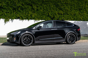 Yes, 20x9.0" and 20x10" TSS wheels fit your factory Tesla center caps. They also fit your factory TPMS, tires, and lug nuts. In other words, there's no need to use any aftermarket hardware.