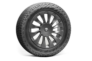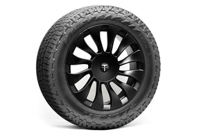 Get your camping gear packed, this T Sportline overland adventure wheel and tire package is ready for action. If you’re readying to explore off road, enjoy an overland adventure, sleep in your camp equipped Tesla Model Y, or navigate the deepest of snow roads, this package will impress.
